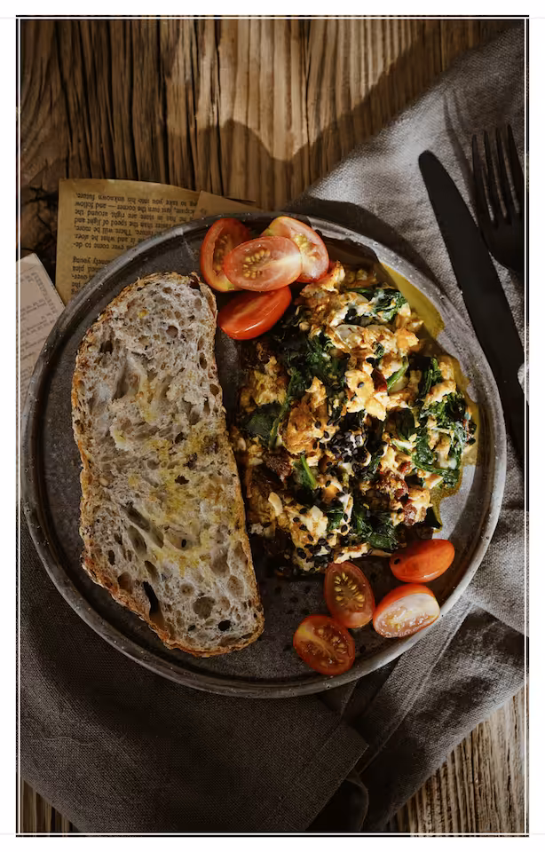 🌸 Jajecznica z kurkumą, suszonymi pomidorami i szpinakiem