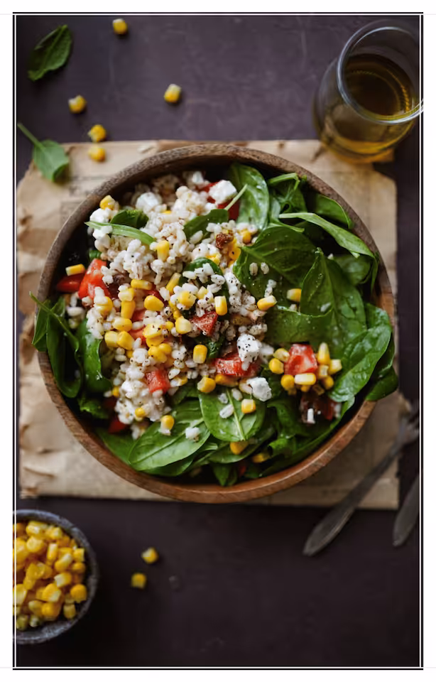 🌸 Sałatka z kaszą pęczak, fetą i szpinakiem